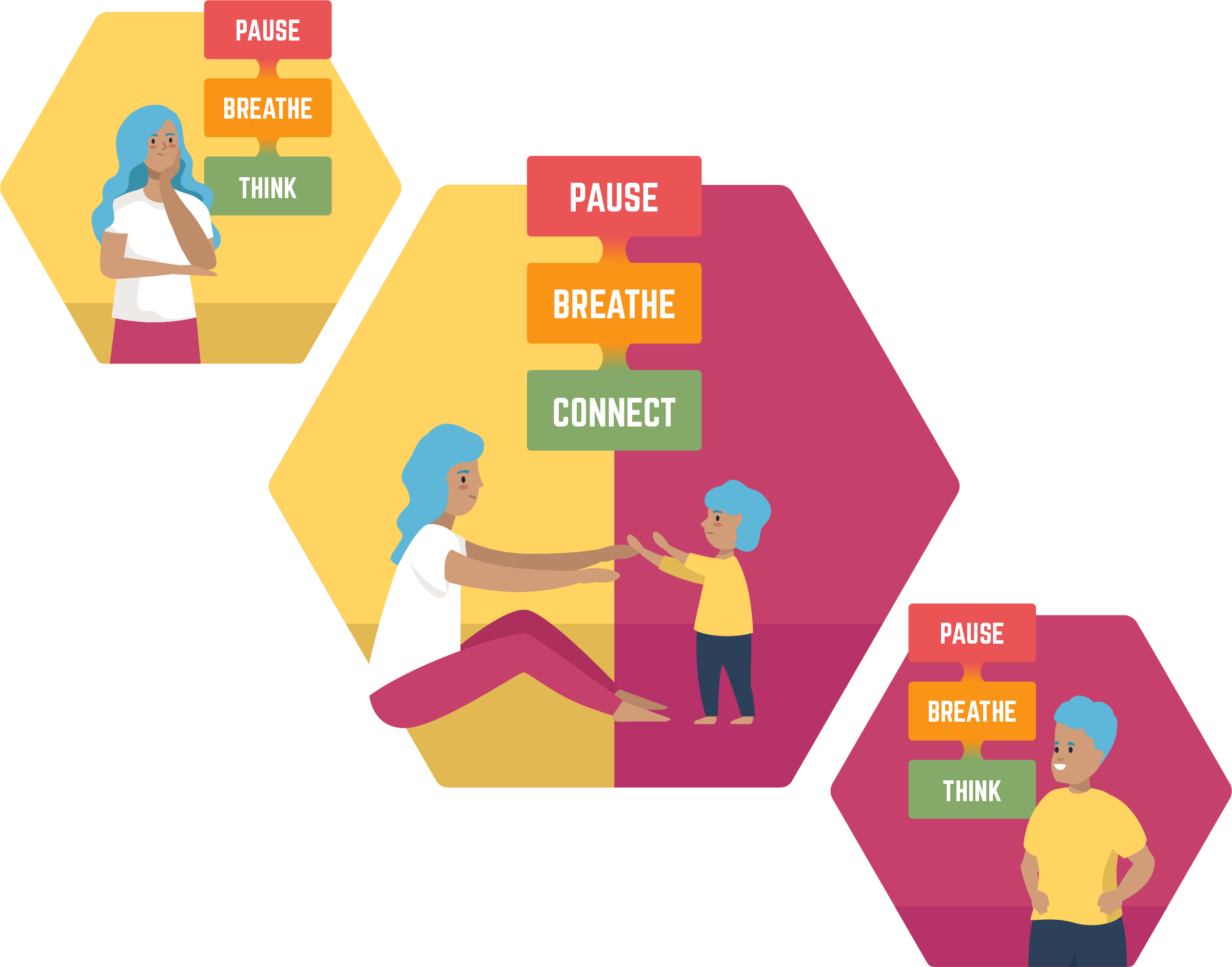 Self-regulation is your ability to manage emotions on your own—to pause, breathe, and think before reacting. This is an important part of creating safety for your child. By sharing your calm, co-regulation is possible. The back-and-forth emotional exchange between the two of you teaches your child’s brain to calm down. Over time, your child will learn to do this on their own.